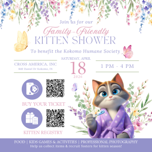 2026 Family-Friendly Kitten Shower Fundraiser Date: Saturday, April 18 Time: 1pm-4pm Venue: Cross America, Inc. Ticket: Adults – $30 | Kids under 12 – $17 |Kids under 2- $0 Goal: Collect Items for Kitten Season and Recruit Fosters Enjoy delicious finger foods by Tastefully Indiana, a silent auction, kid-friendly games and crafts, and special recognition […]